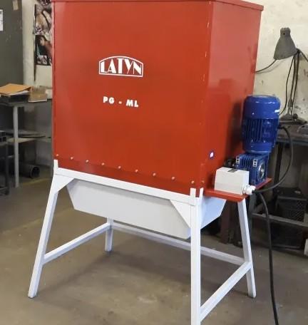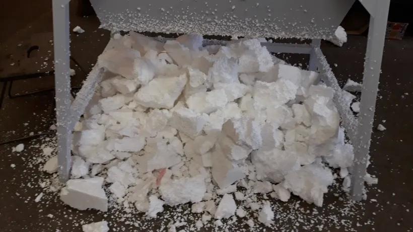 Předdrtič. Rychle předdrtí velké kusy odpadního polystyrenu na kusy, které lze snadno ukládat do pytlů či bigbagů a takto převážet. Produkt se pak snadno drtí v jemnějších drtičích.