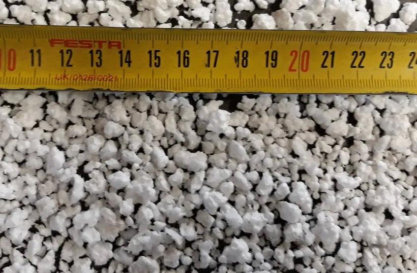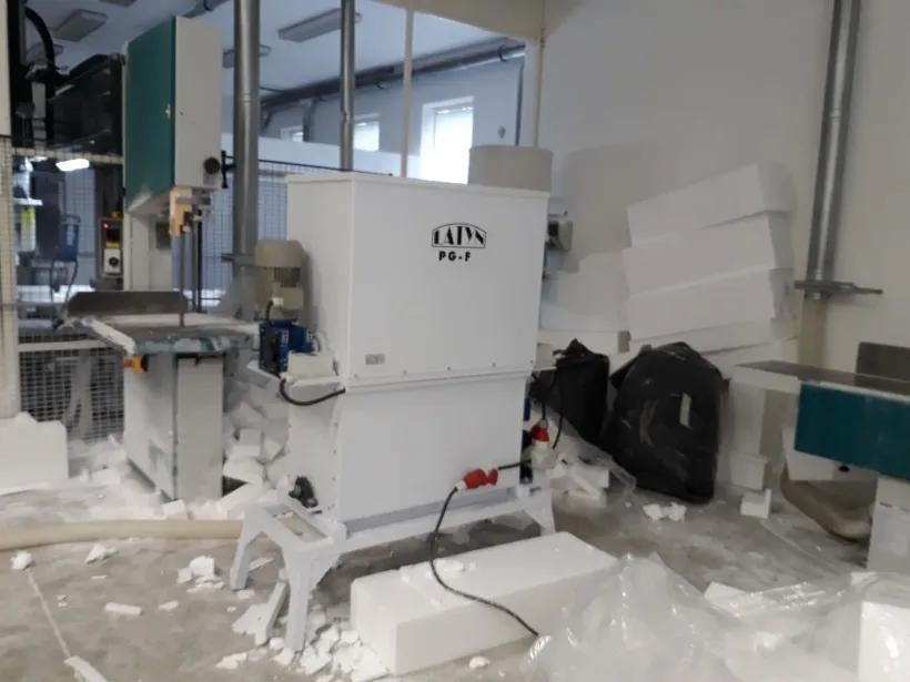 Výkon drtiče může být až 12-15 m3 jemného drceného produktu za hodinu, podle provedení drtiče a také podle druhu vstupního odpadního polystyrenu.