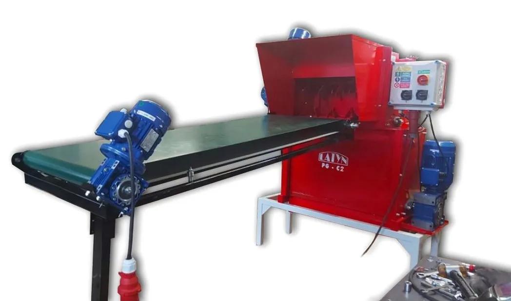 Stroj dodáváme alternativně podle požadavků zákazníka na drcené množství a velikost zrna . Stroj je poháněn opět dle alternativ dvěma až čtyřma motory a má dva až čtyři drtící hřídele. Může se dodat také dopravník, který dopravuje odpadní polystyren do vstupního hrdla drtiče. Ve spodní části je umístěna výstupní trubka od 100 do 200 mm, na kterou se napojí hadice k dopravě produktu do bigbagu nebo do sila. Na objednávku lze dodat i konstrukci k uchycení bigbagů a také další speciální dmychadla k dopravě drceného produktu.