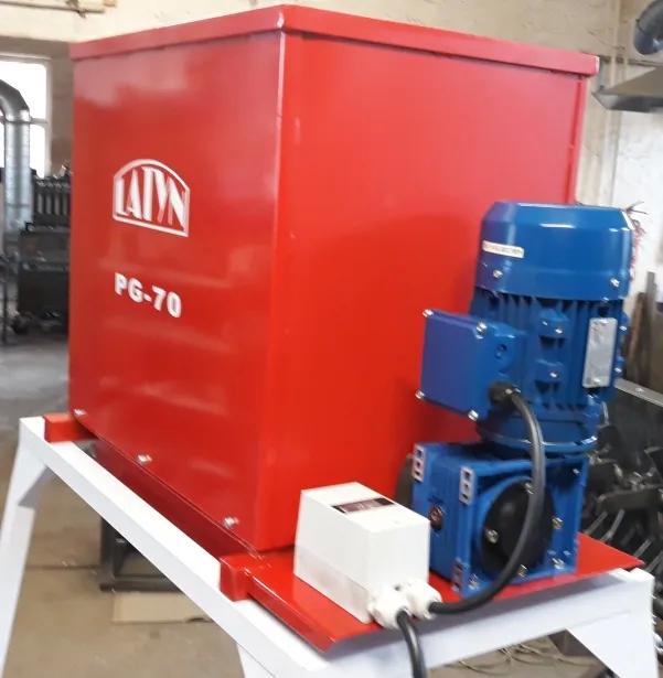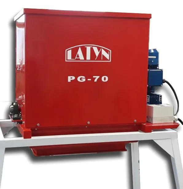 Výkonný drtič polystyrenu LATYN PG-70 vybavený motorem pouhých 1,5 kW a převodovkou hluboce redukující otáčky motoru. Výsledný produkt – polystyrenová drť – se dá využít ve stavebnictví – zásypy půdních prostorů, zateplení obvodových stěn, apod. ale i např. na provzdušnění zeminy. Výkon až 5 m3 za hodinu. Hmotnost dle provedení asi 100 kg.